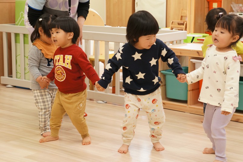 つぎ、みんなで集まる時は、ひとつおにいさん、おねえさんになっていて、帽子の色も変わるんだよ。