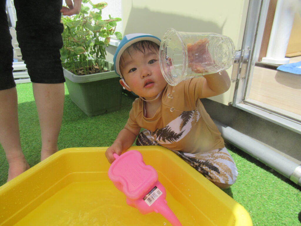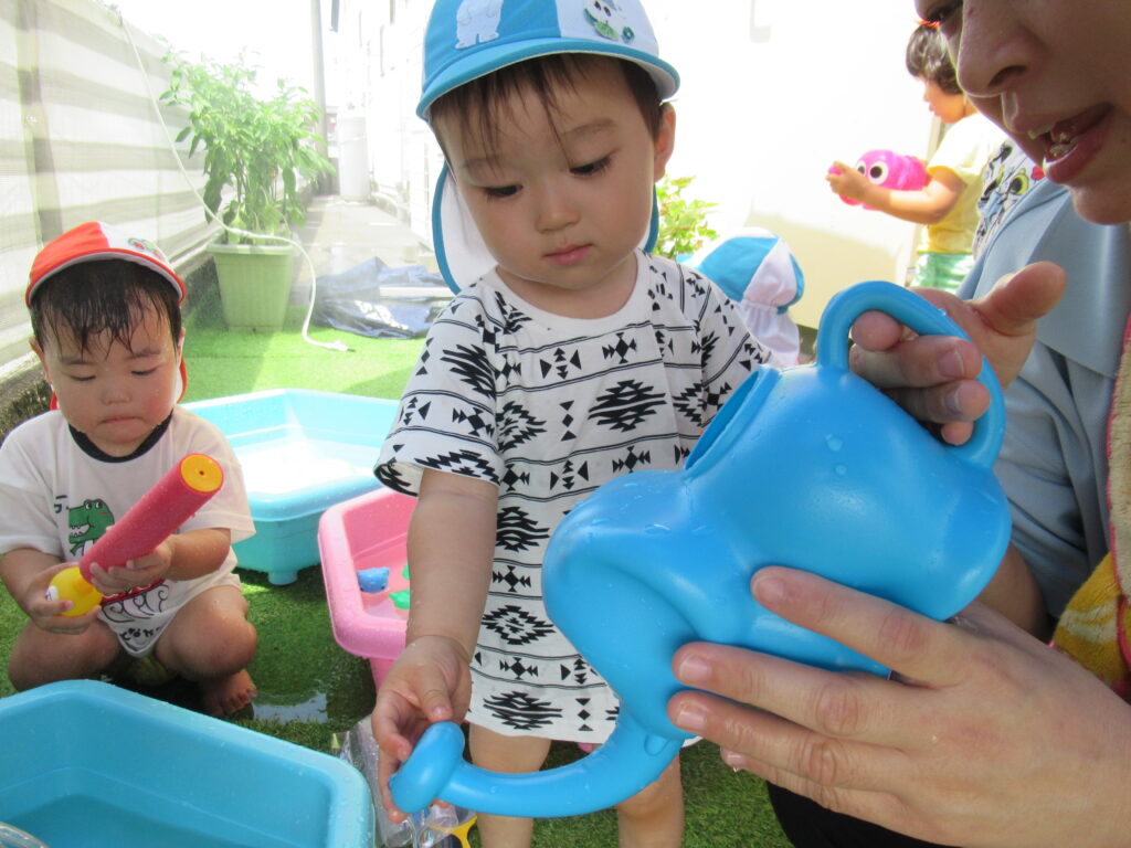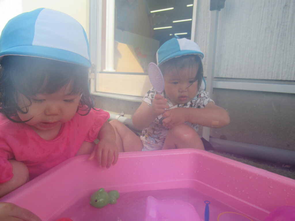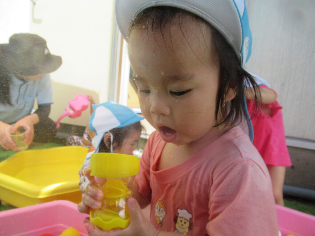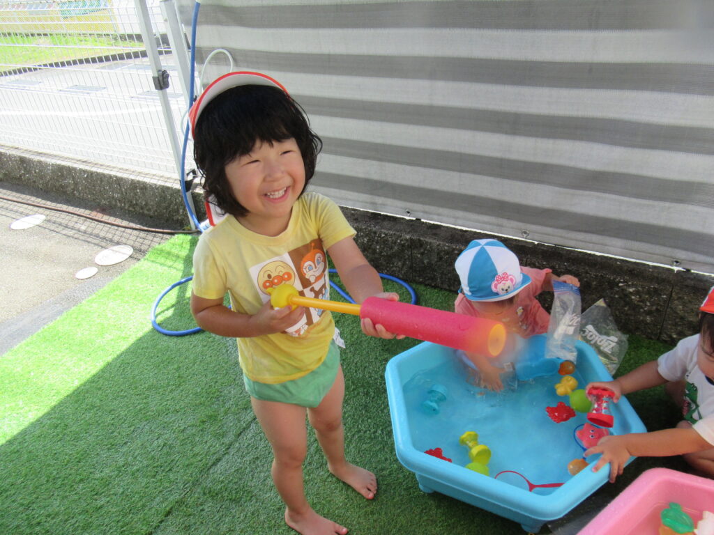 最初は水に慣れなかった子も、おもちゃであそんだり、自分から水に触れたり…