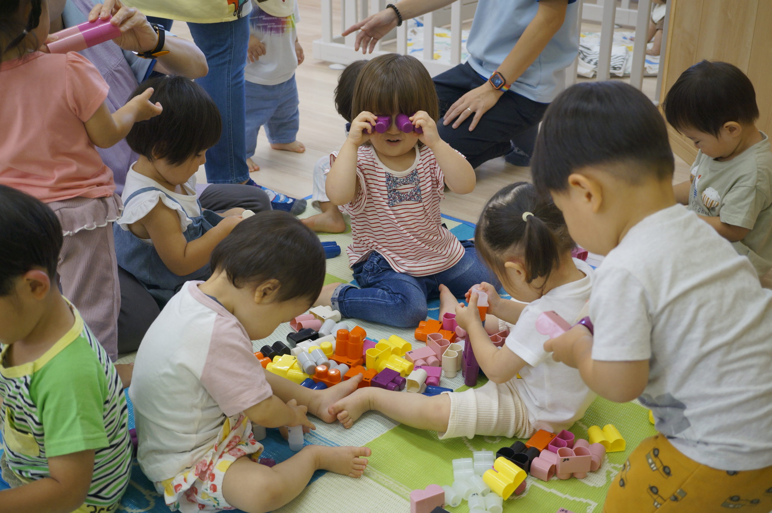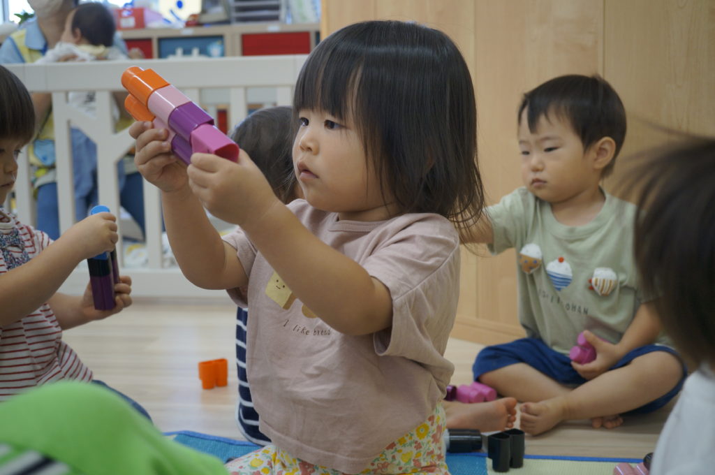 今日は新しいおもちゃ、Bブロックで遊びました。子どもたちはカラフルなブロックで想像力あふれる遊びを展開していました。たくさんの体験を通して豊かなこころを育んでもらいたいと考えています。