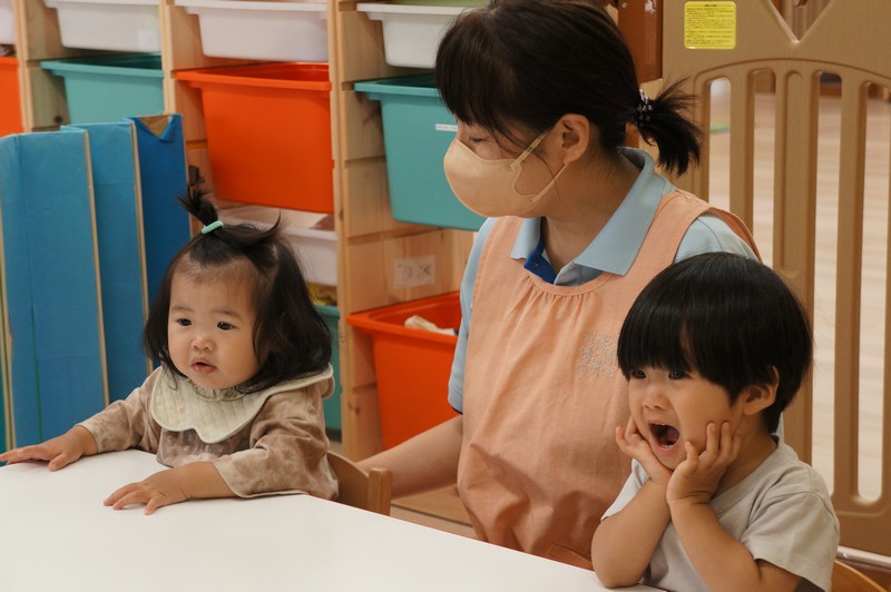 2歳児クラスの朝の会。