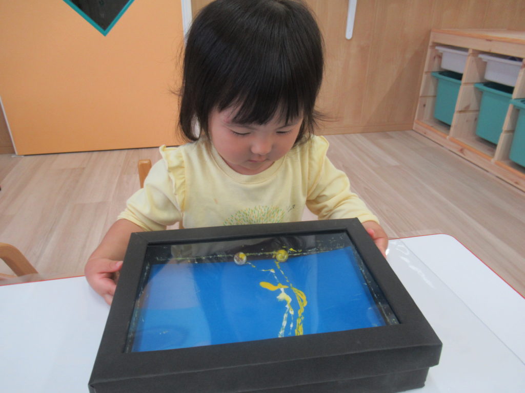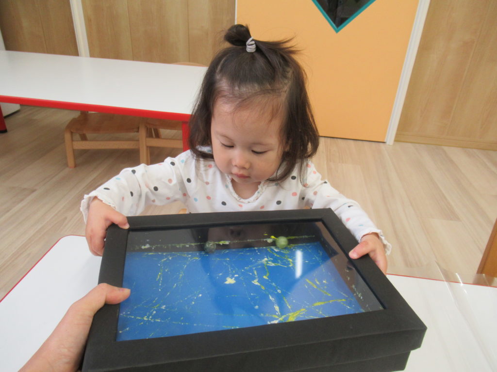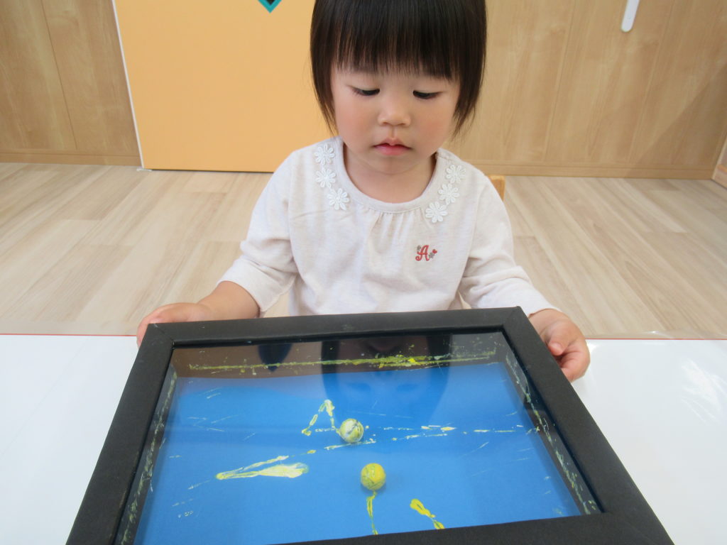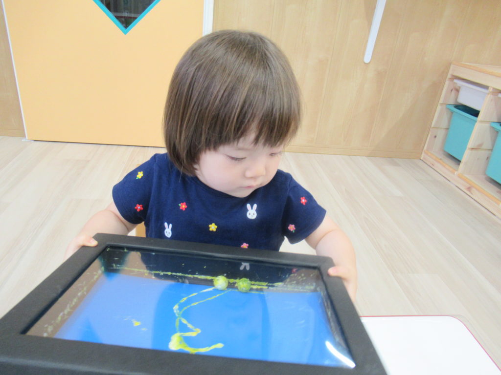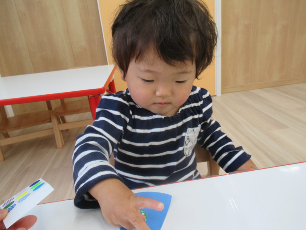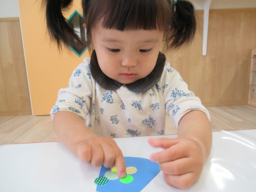 いよいよ東海地方も梅雨入り。雨の日はお散歩や水遊びができませんが、そういう時こそ室内で制作あそび。今日は七夕飾りの制作をしました。ビー玉ころころ、楽しかったかな?
