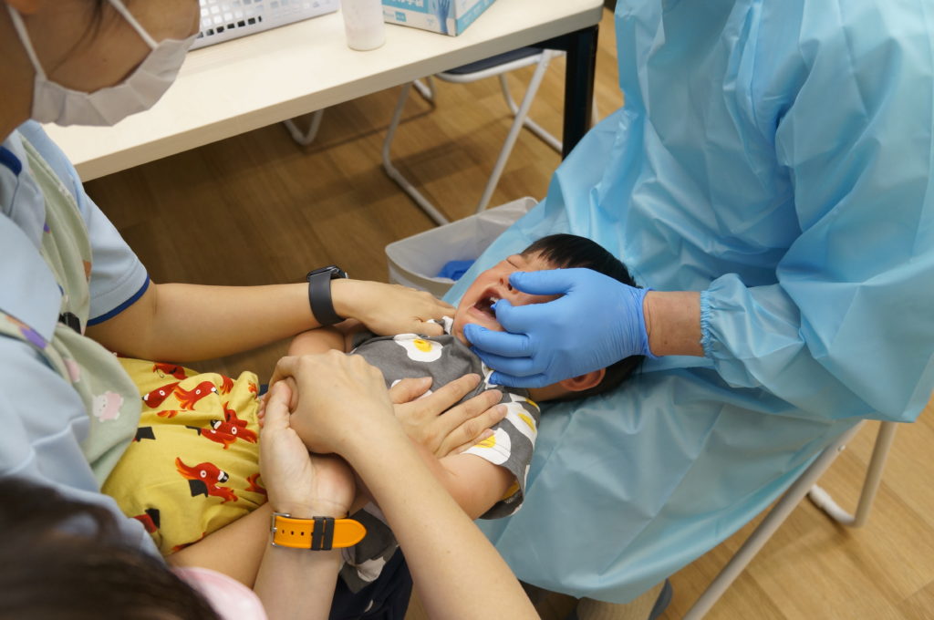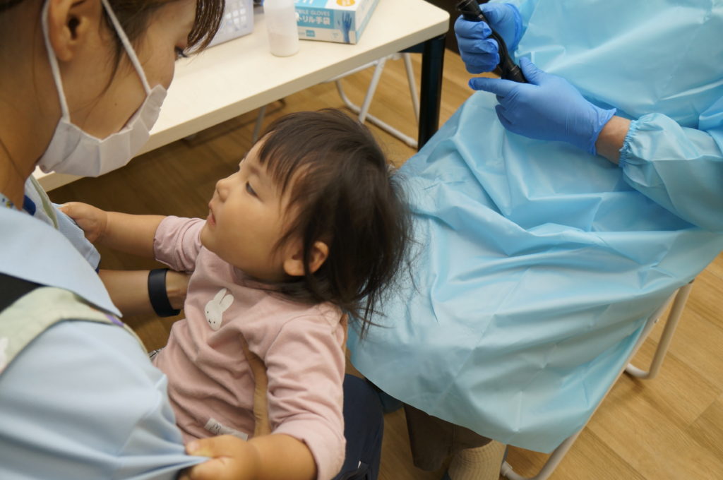 今日は歯科検診を行いました。驚いて泣いてしまう子もいましたが、みんなきれいな歯をしていました。とても健やかに成長していますね。また、6月入所のお子様は内科検診も行いました。結果は今日のお便りで配布しますのでご確認ください。お休みのお子様は後日実施します。