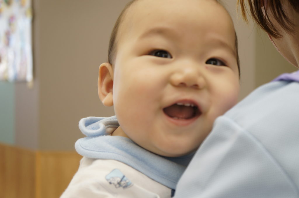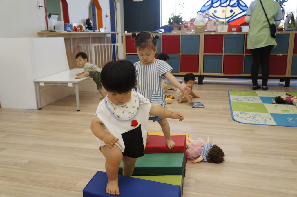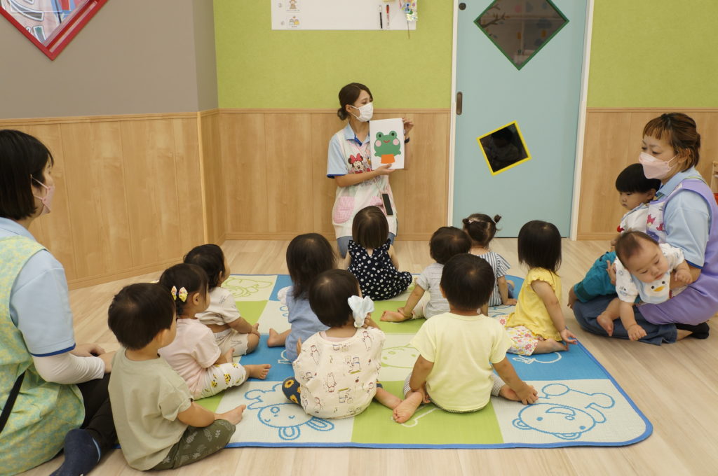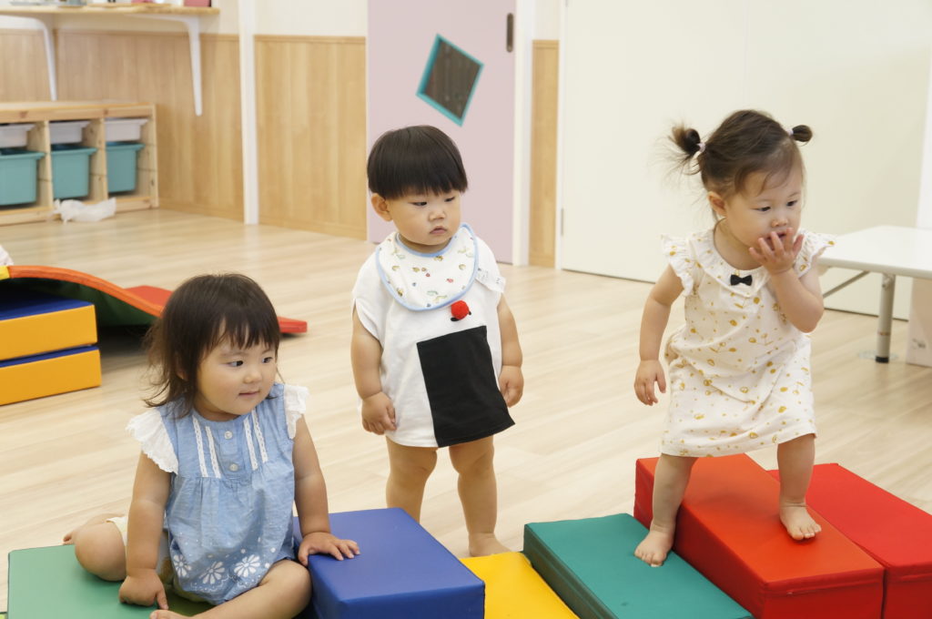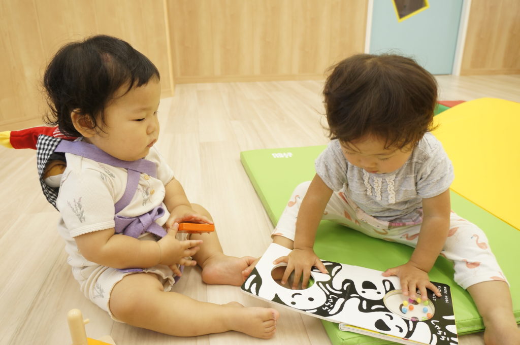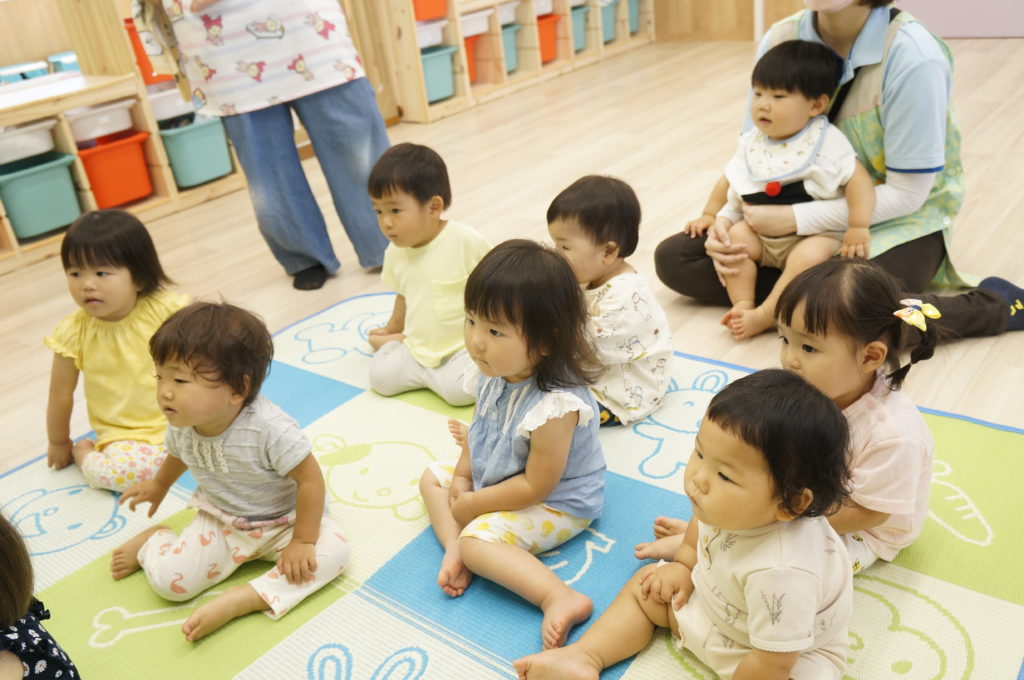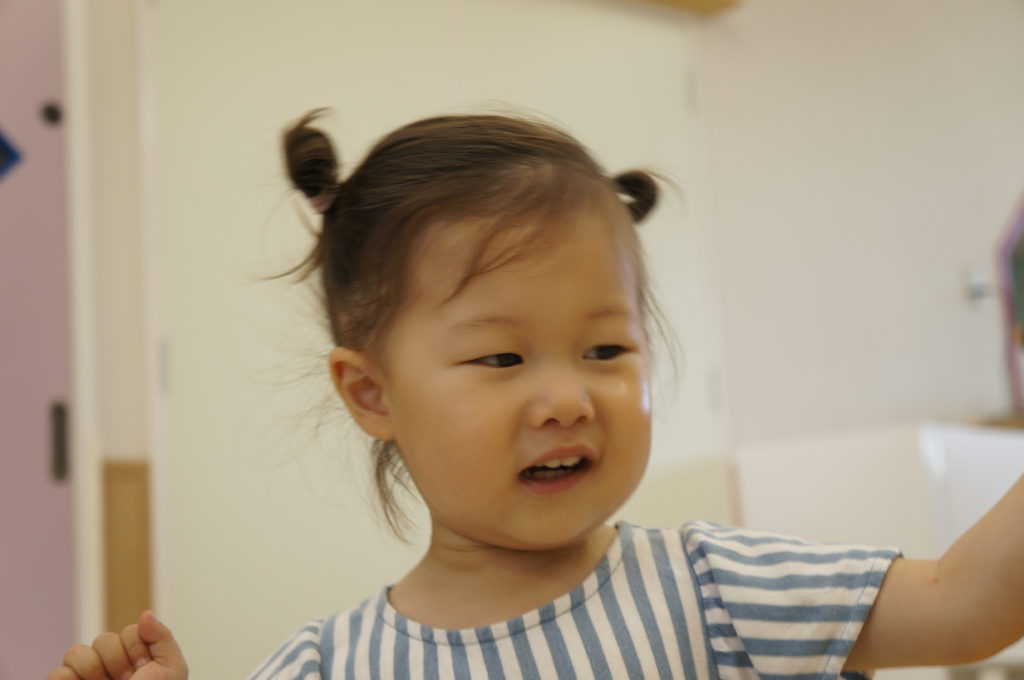 ビニール袋に絵の具を入れて、ぶにゅっとした感触を楽しむ絵の具あそびをしました。表面をさわると色々な模様ができます。個性豊かな作品を嬉しそうに見せてくれました。