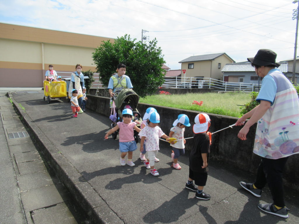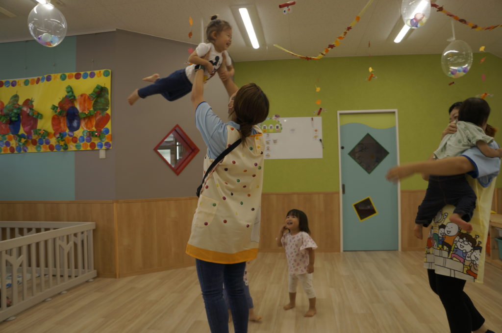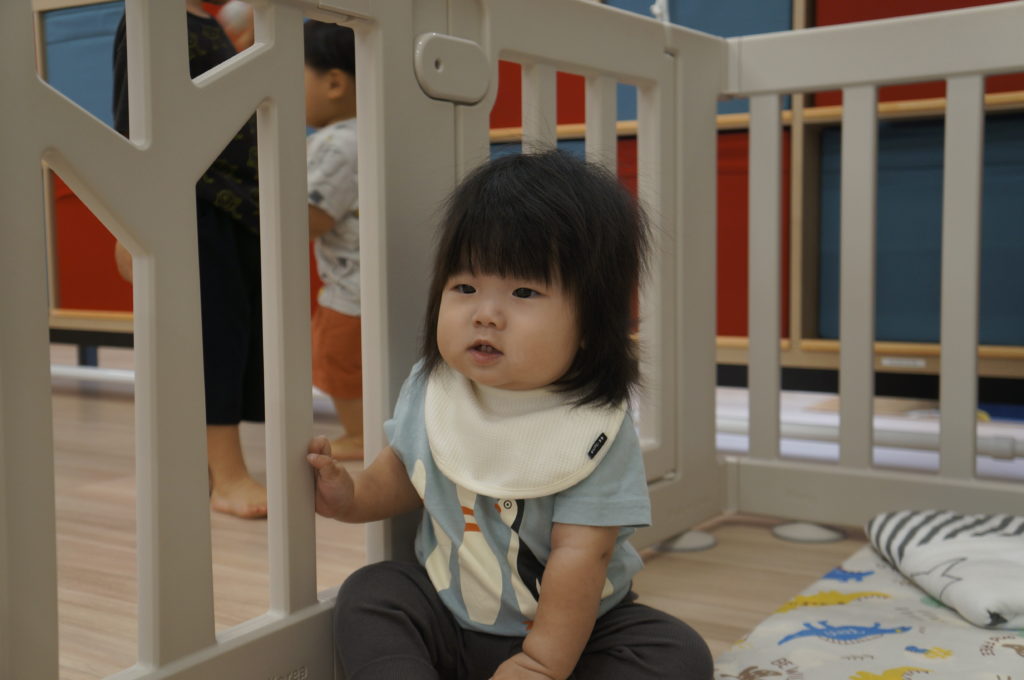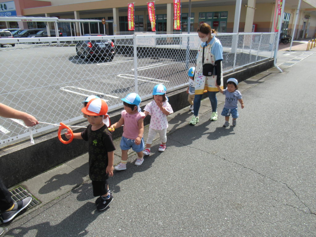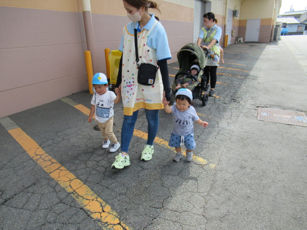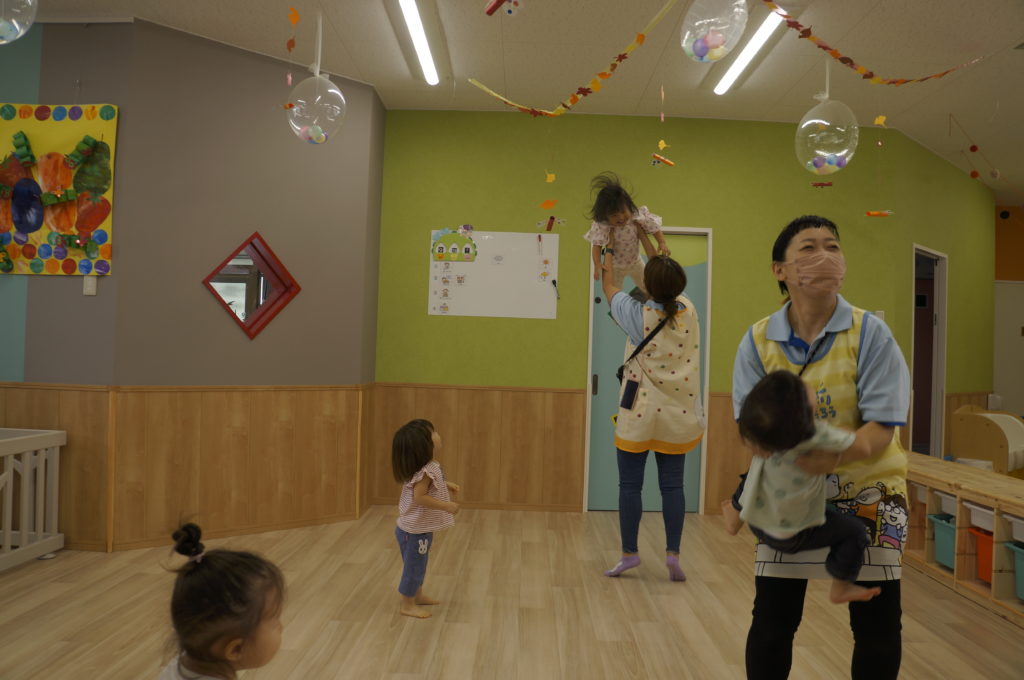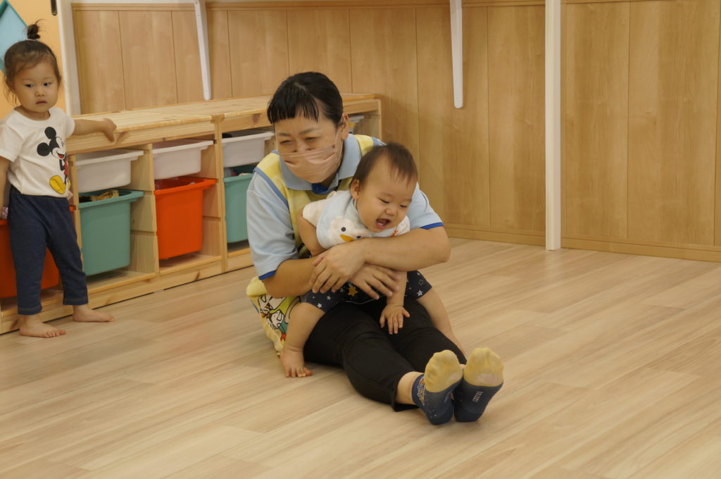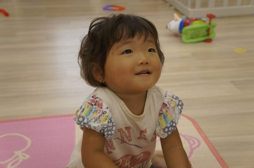 列に並ぶ練習もしています。ただ並ぶのは難しいので、自分のマークの書かれたシートの上に立っています。みんな自分のマークをちゃんと覚えているんですよ。みんなすごい!