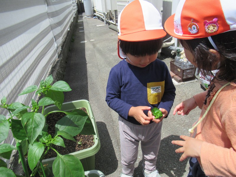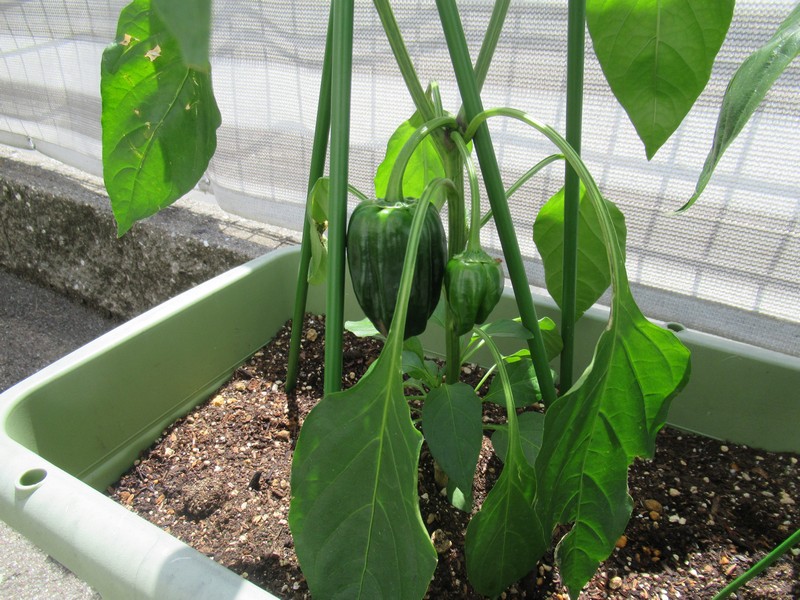 苗の時からふくらんでた、ちょっと気の早いピーマンさん。