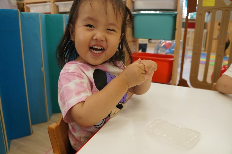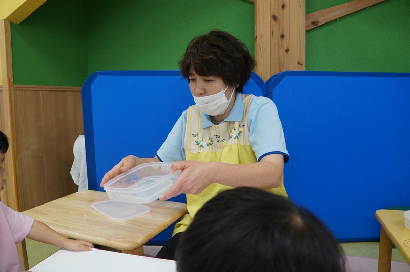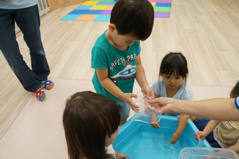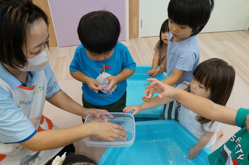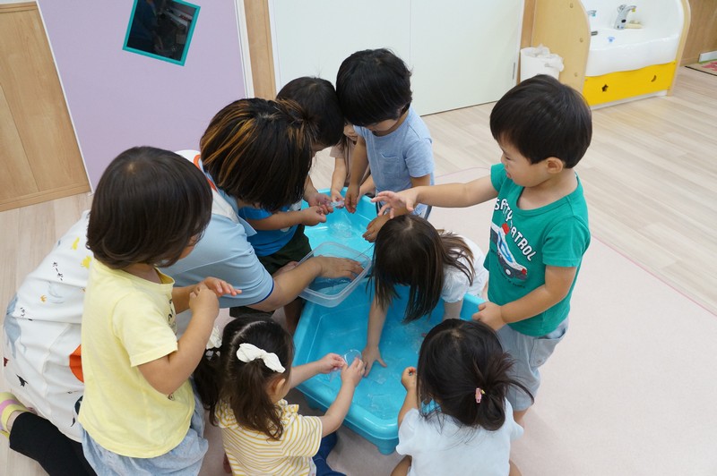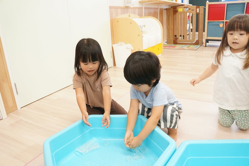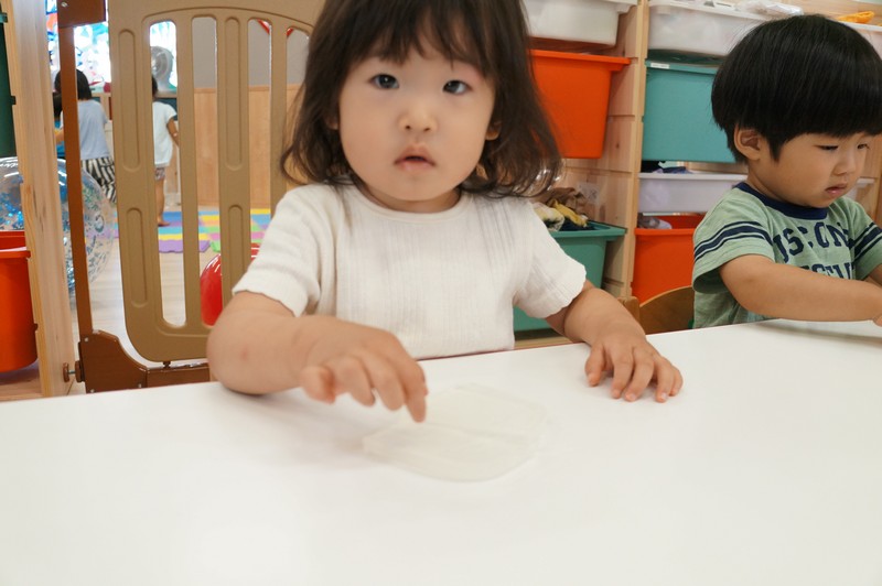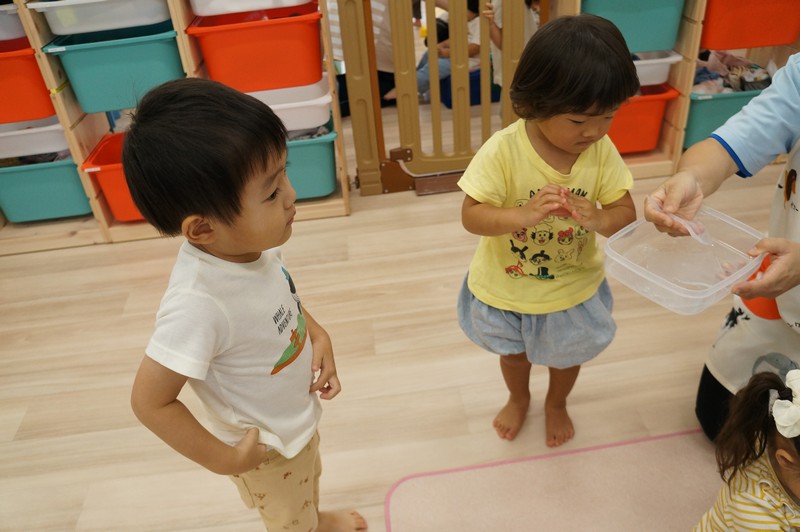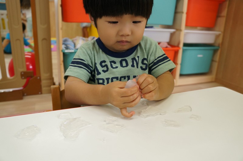 寒天ならではの触り心地や見た目、音などを感じ、五感を養います。