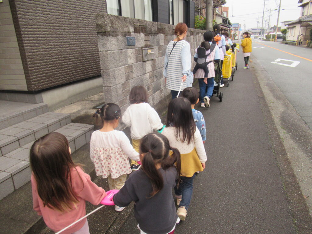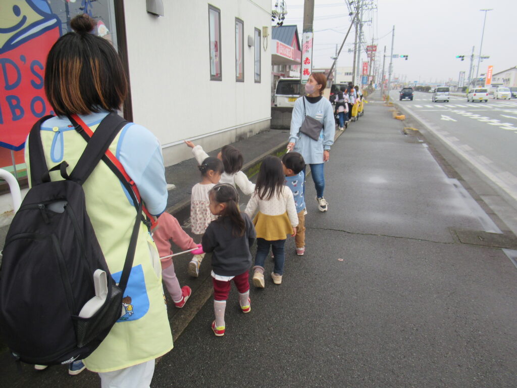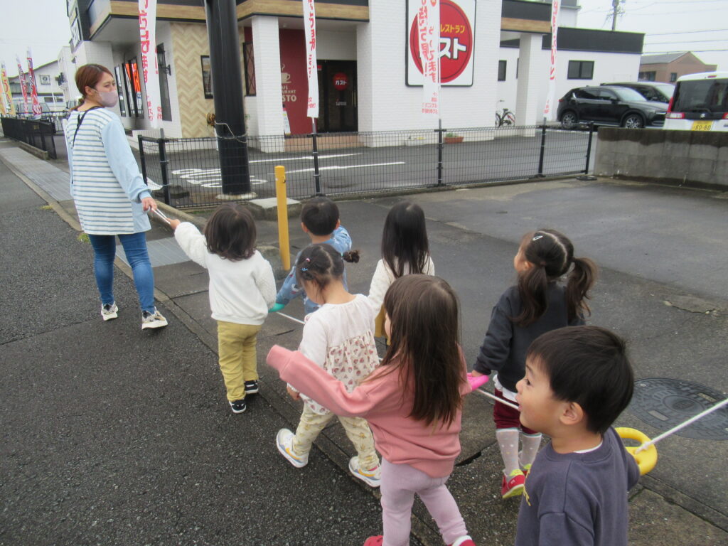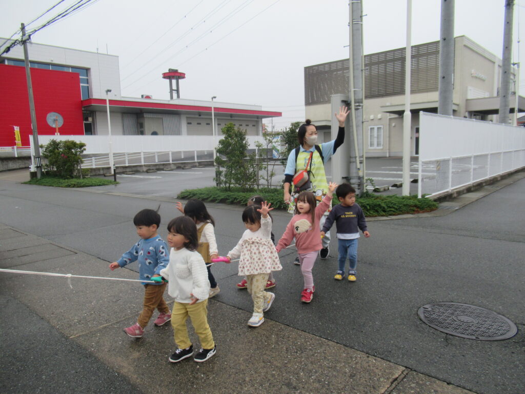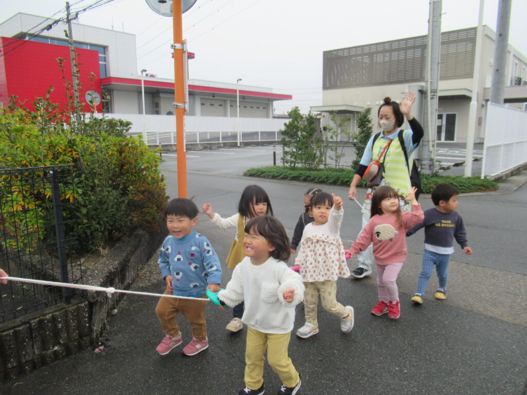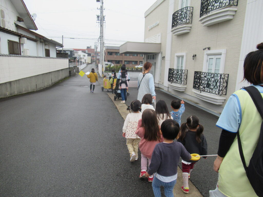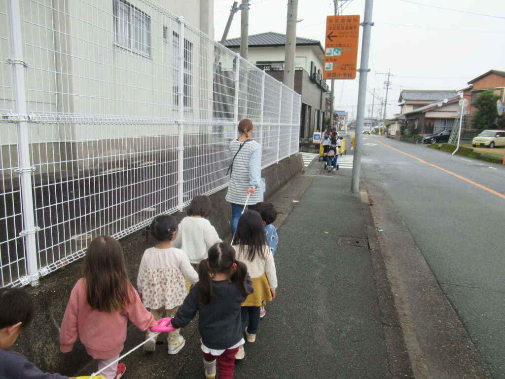 今月は、地震、津波の発生を想定し、全員で第一避難場所である「御薗小学校」まで避難しました。