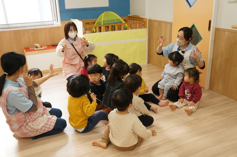 お友だちと楽しそうにお話しながら、