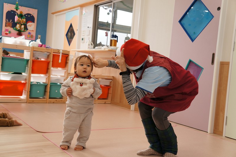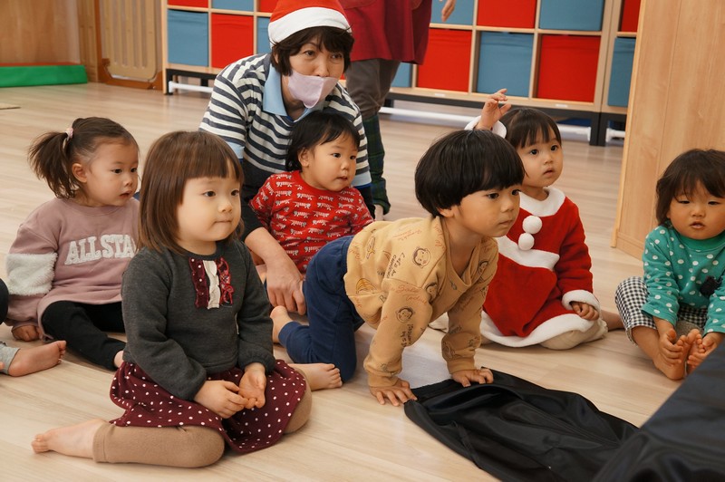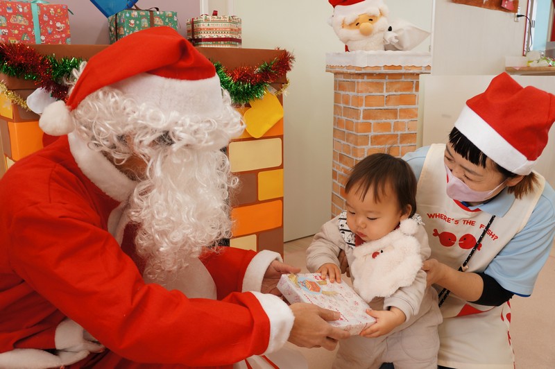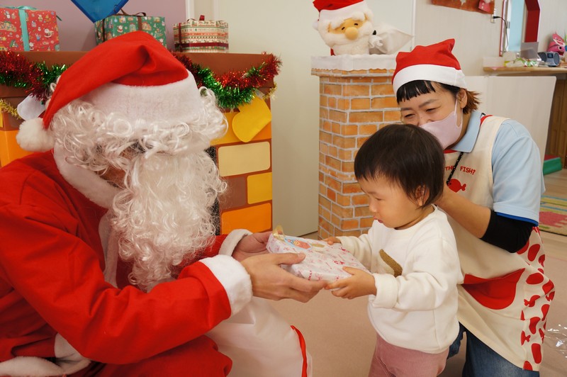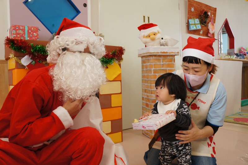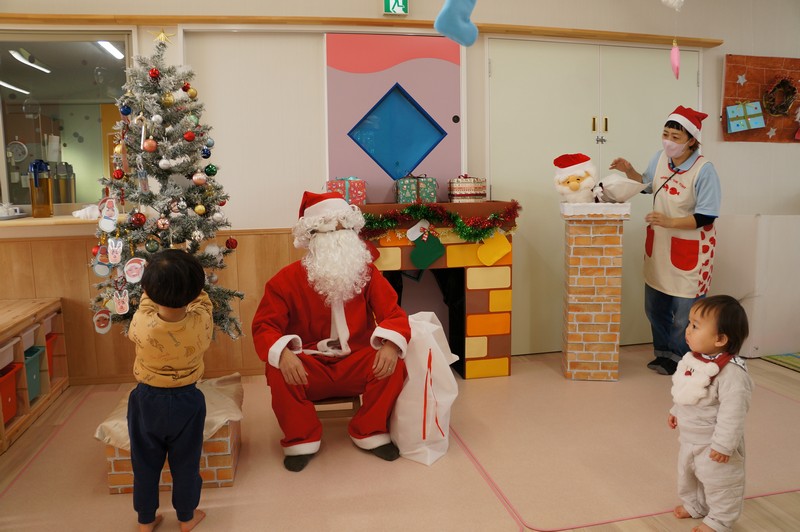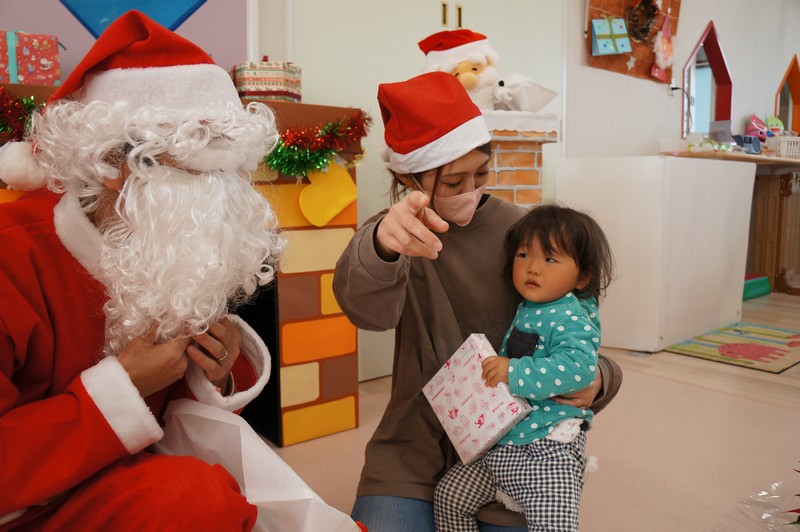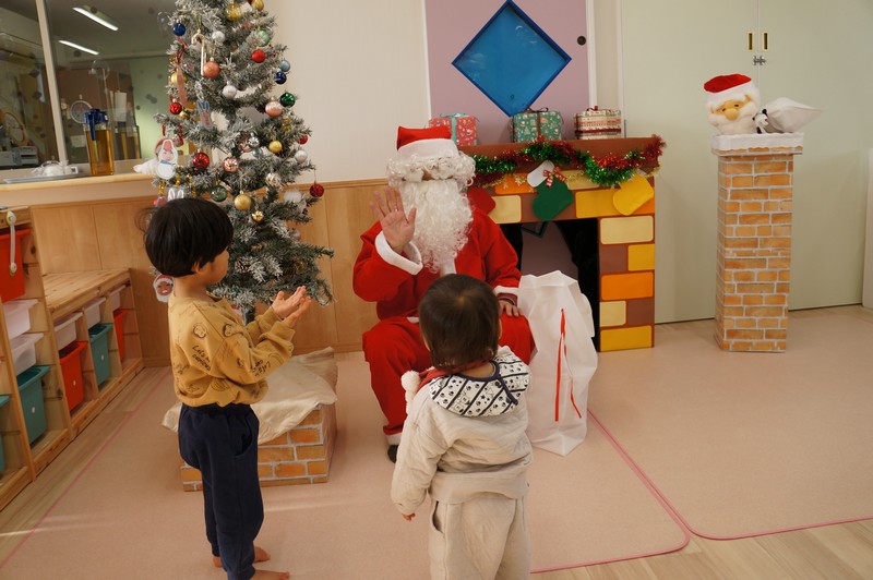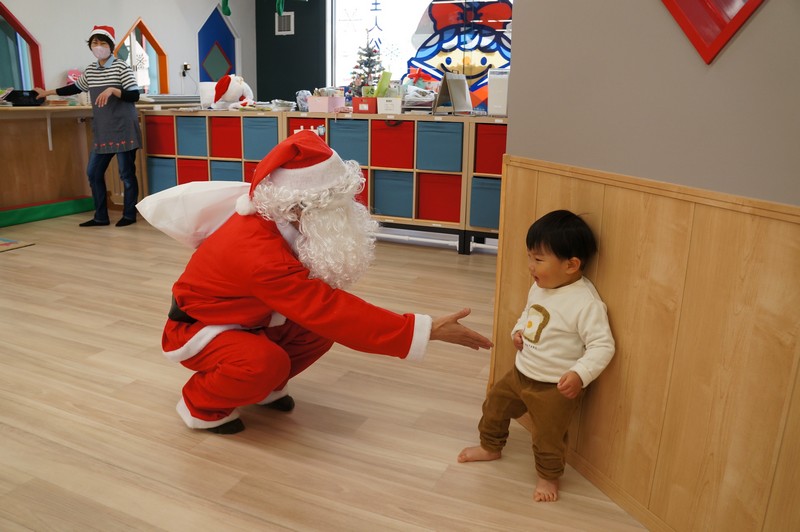 サンタさんには、ちょっぴりビックリした子どもたちも、