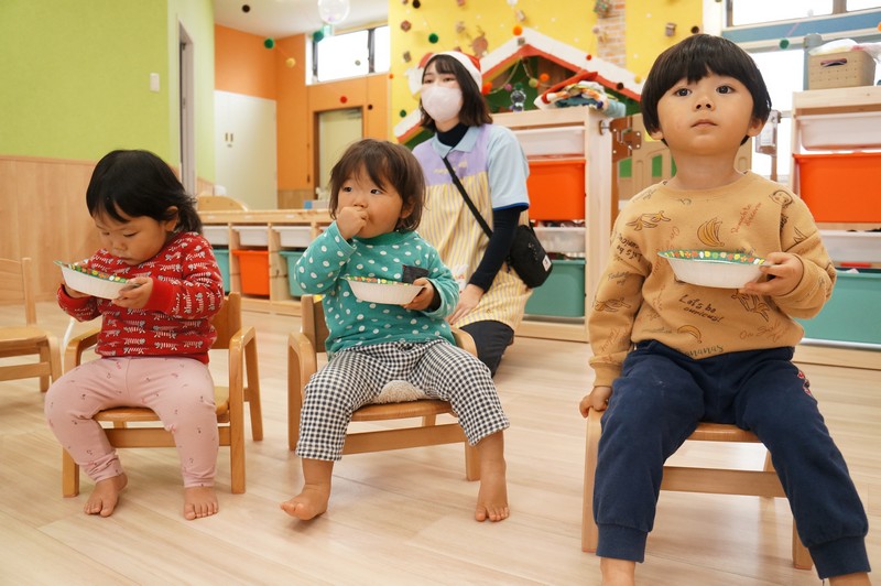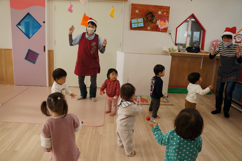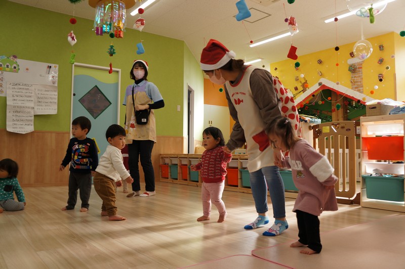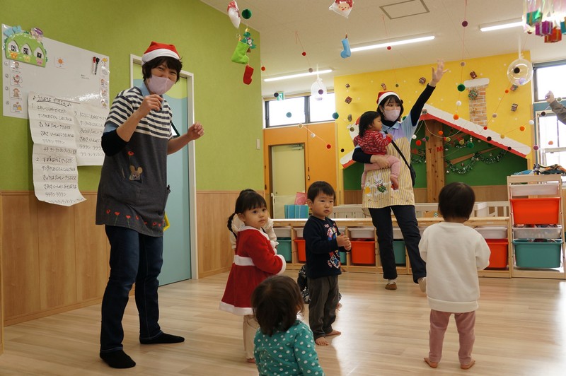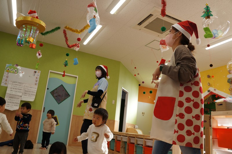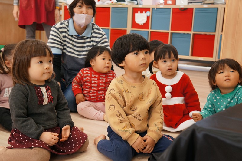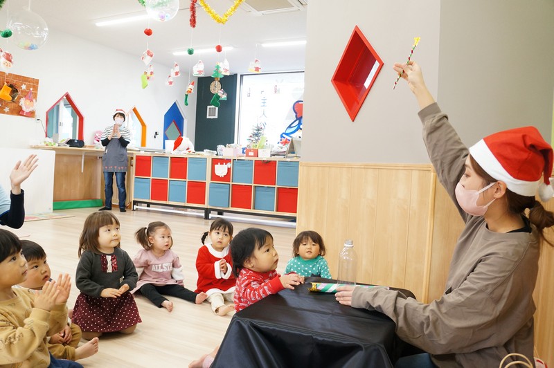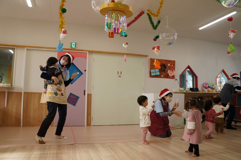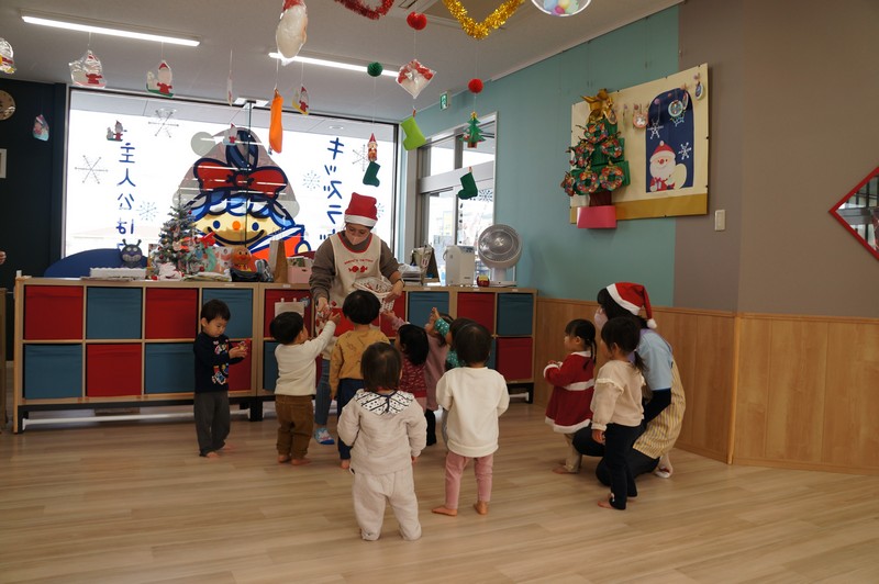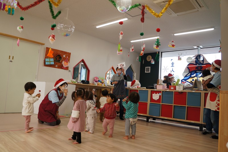 サンタさんには、ちょっぴりビックリした子どもたちも、
